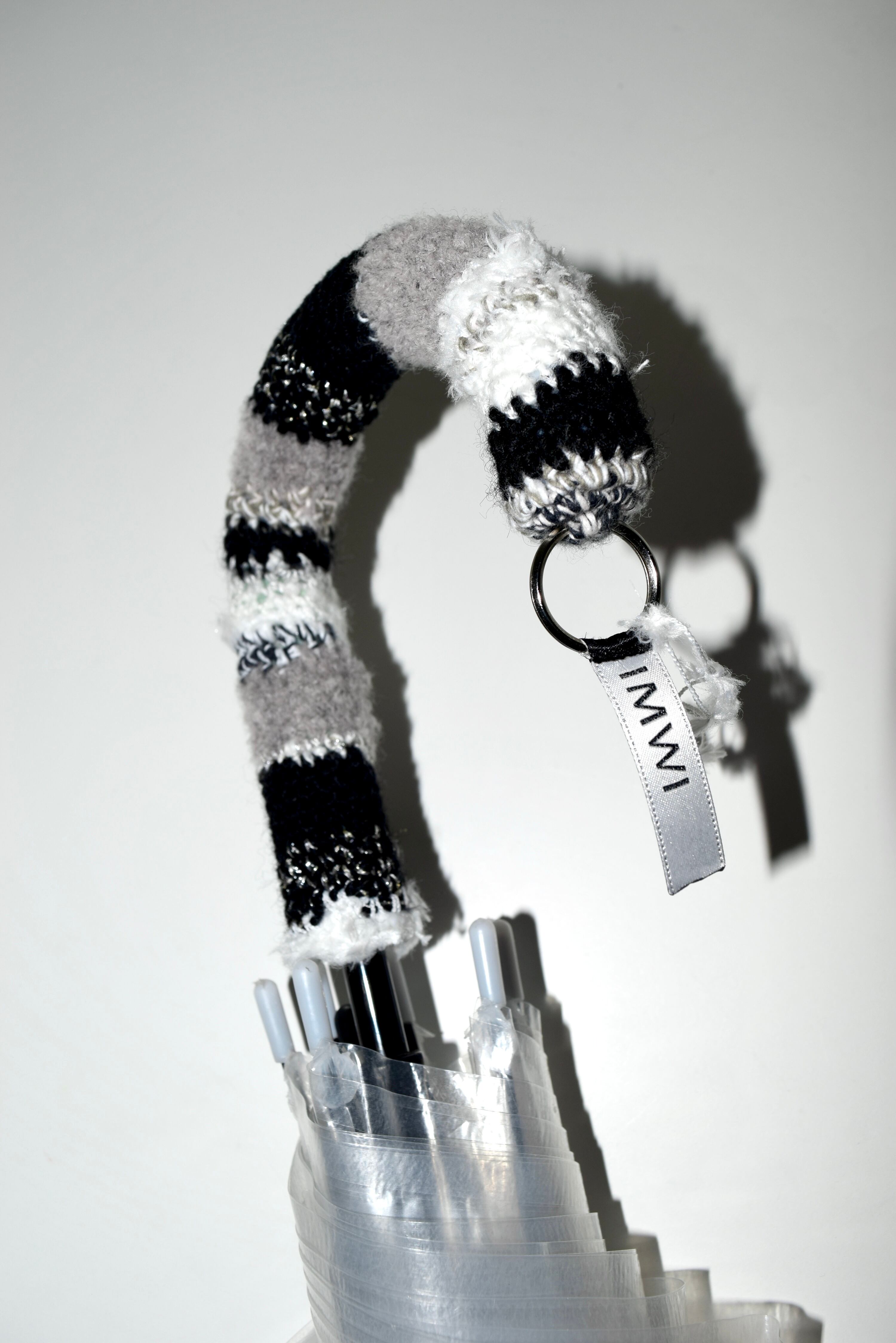 Mix yarnやScrap yarnを使い、細かい色の切り替えやオリジナリティあるカラーリングのUmbrella grip cover/傘グリップカバーです。